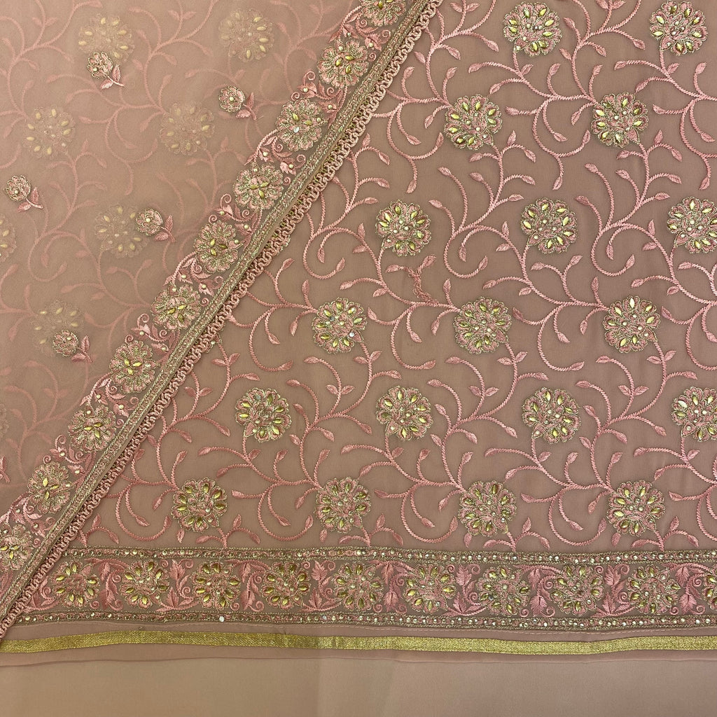 ▪️ Floral jaal self threadwork embroidered georgette suit with gold stonework all over & border