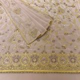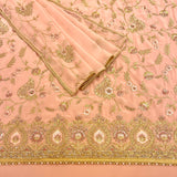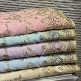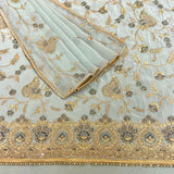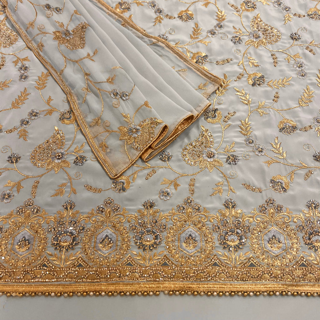 ▪️Georgette duppata with a two side embroidered border with floral embroidered motifs all over & finished with a four side gold piping