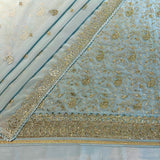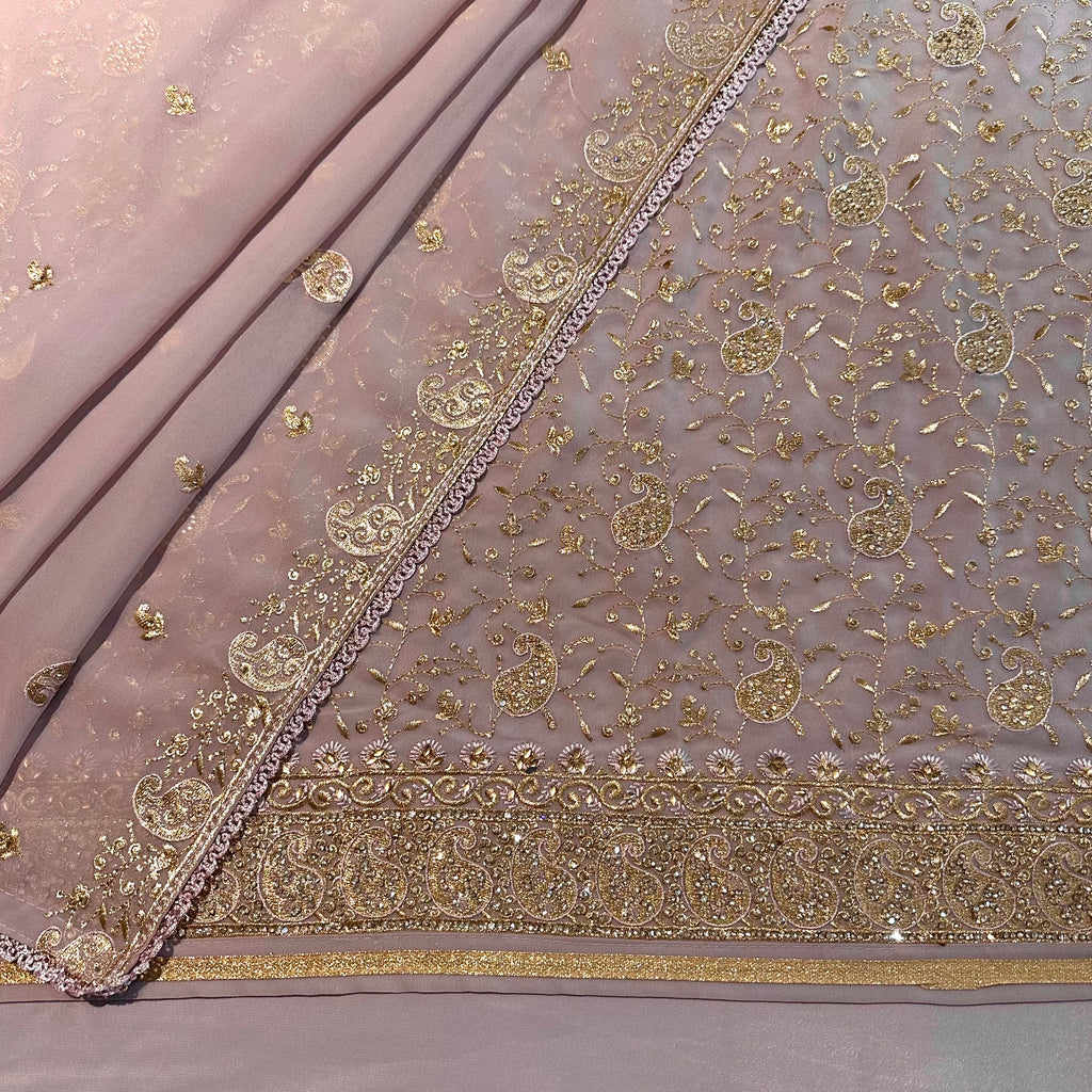 ▪️ Floral paisley jaal threadwork embroidered georgette suit with gold stonework all over & border