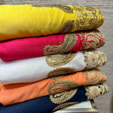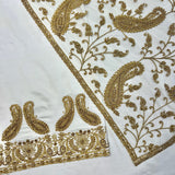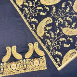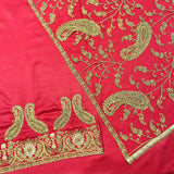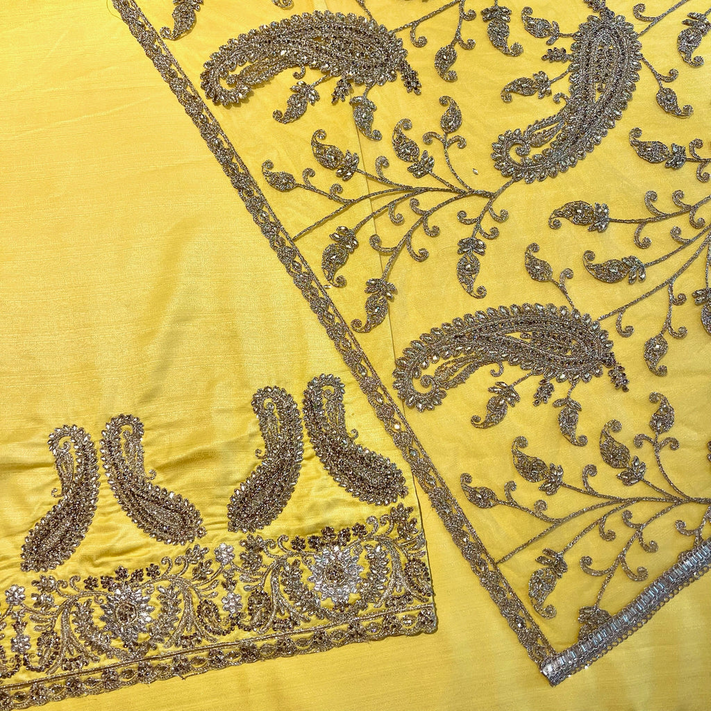 ▪️Unstitched soft faux raw silk suit embellished with antique gota pati, dori work & stonework with a heavy embroidered border