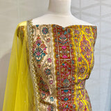 ▪️Comes with a matching tulle net dupatta with a four side gold border with stonework all over
