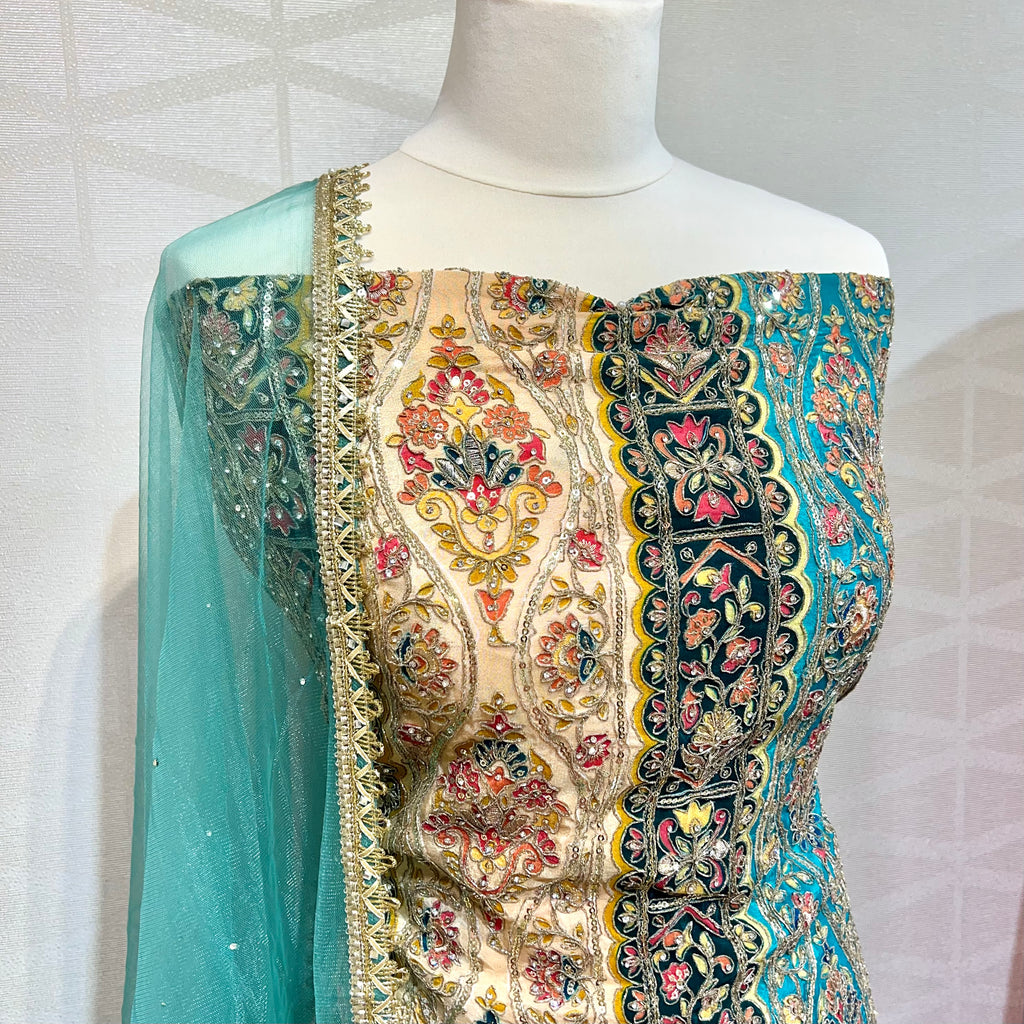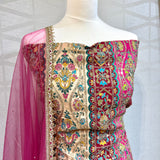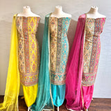 ▪️Unstitched colourful digital printed soft faux silk suit embellished with doriwork, sippiwork & stonework
