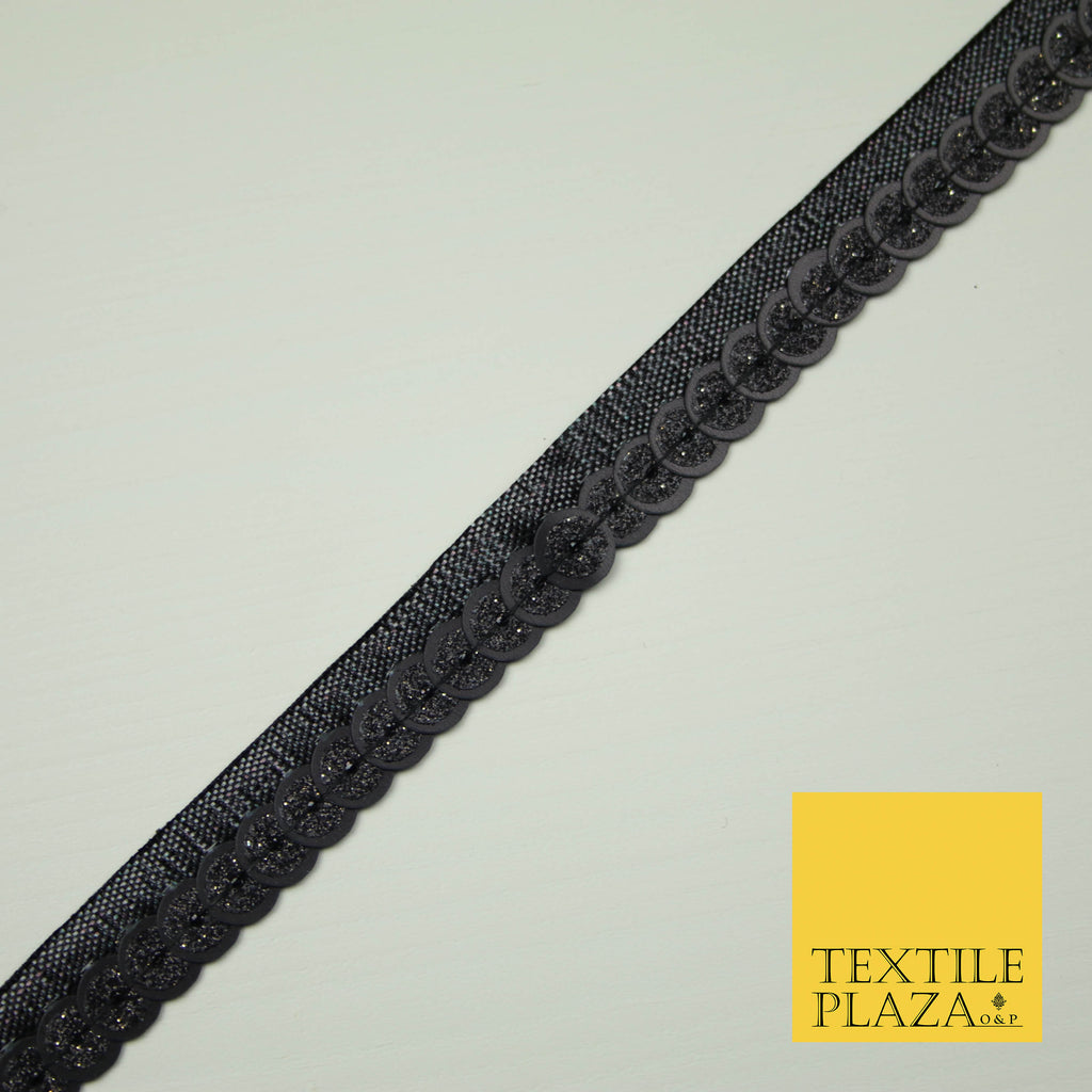 Full Black Glitter Double Sequin Ribbon Trimming Border