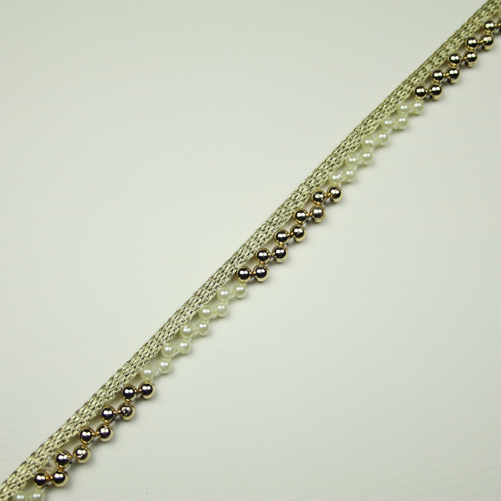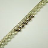 Ivory Gold Chrome Pearl Dashed Beaded Trimming Border