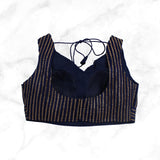• KIARA | NAVY FANCY STONEWORK STRIPE TRIM  BLOUSE