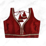 • MAYA | MAROON SEQUIN TRIMMED PLAIN SILK BLOUSE