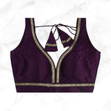 MAYA | PLUM SEQUIN TRIMMED PLAIN SILK BLOUSE