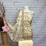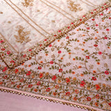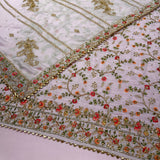 ▪️Statement chinnon dupatta with embroidered floral clusters & four sided contrast floral threadwork border