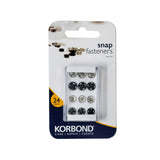 Korbond Sew On Snap Fasteners in nickel and black finish are an ideal solution for garments and bed linen requiring a lightweight and rustproof fastening.
