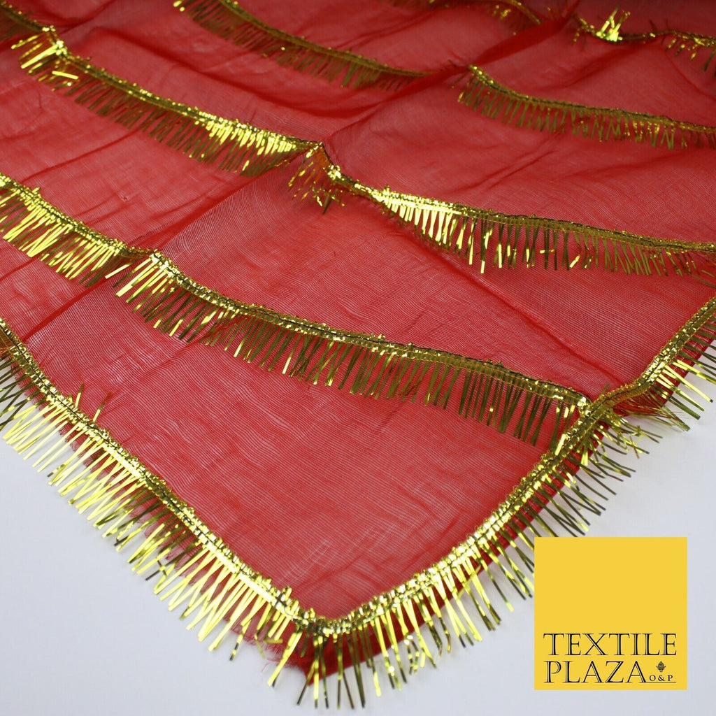 Mata Ki Chunni Embroidery Fringe Golden Border Devi Mata Pooja Chunari Chunri Puja