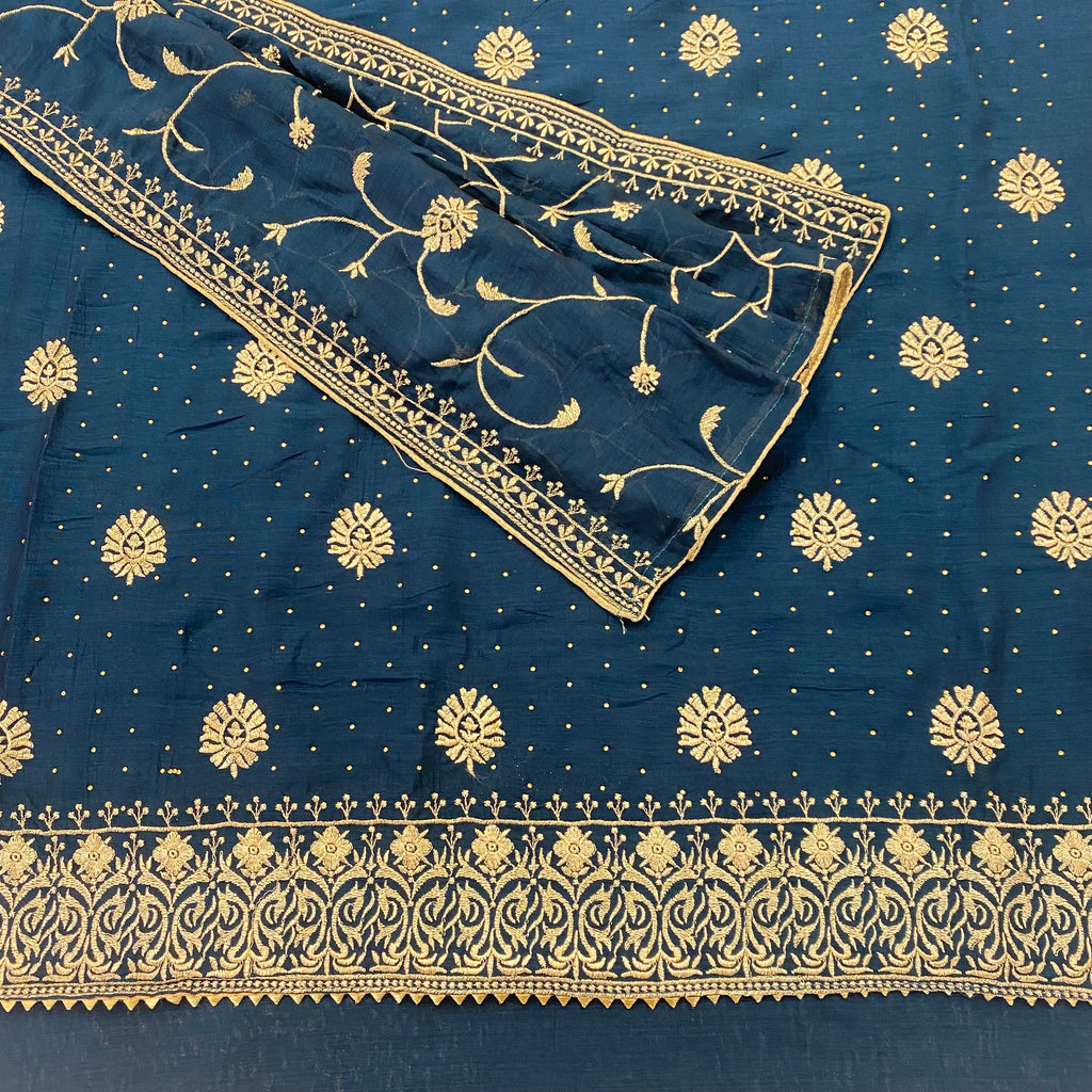 ▪️Kameez features floral motif embroidery with antique stonework all over & border