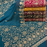 ▪️Georgette duppata with two side embroidered scalloped border with antique stonework all over