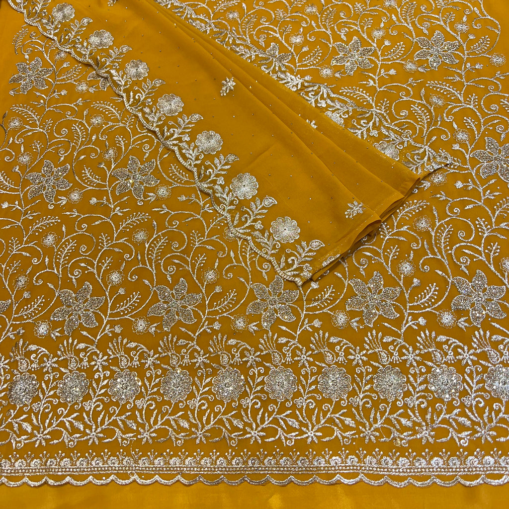 ▪️Unstitched soft georgette suit with jaal embroidery & stonework all over with border