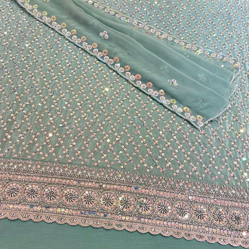 ▪️Comes with a chiffon dupatta with flower motif embroidery & two side border