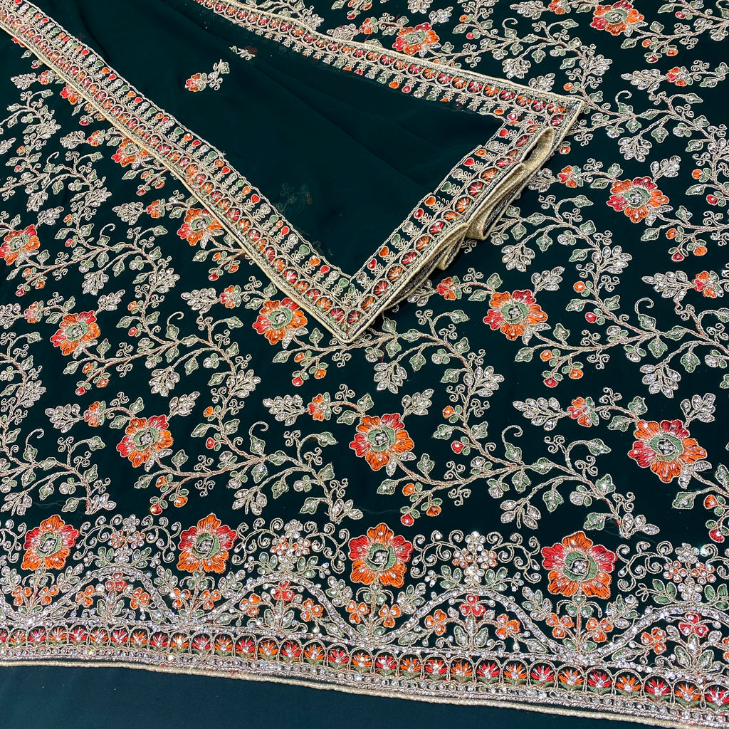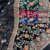 ▪️Georgette duppata with flower motif embroidery all over & four side border