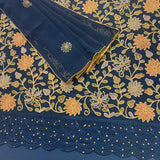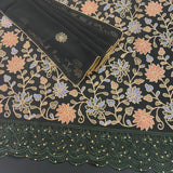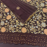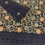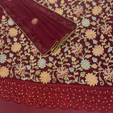 ▪️ Floral jaal threadwork embroidered georgette suit with antique gold stonework all over & border