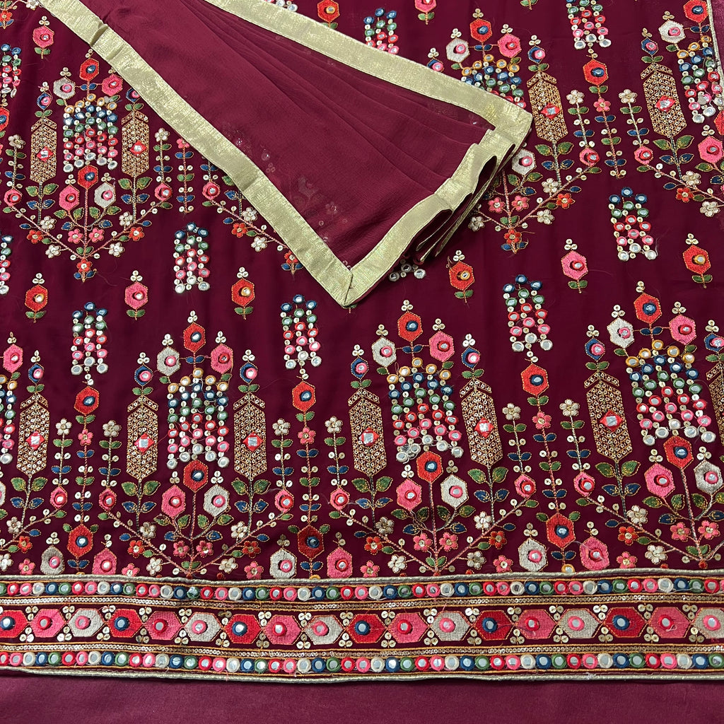 ▪️ Floral jaal threadwork embroidered georgette suit with mirror effect work & sippiwork all over & border