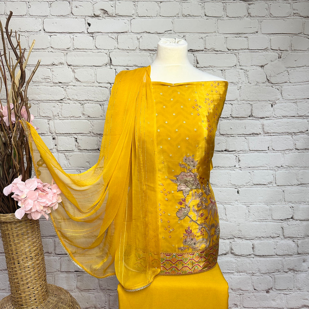 ▪️Kameez features a floral print with doriwork & sippiwork all over with border