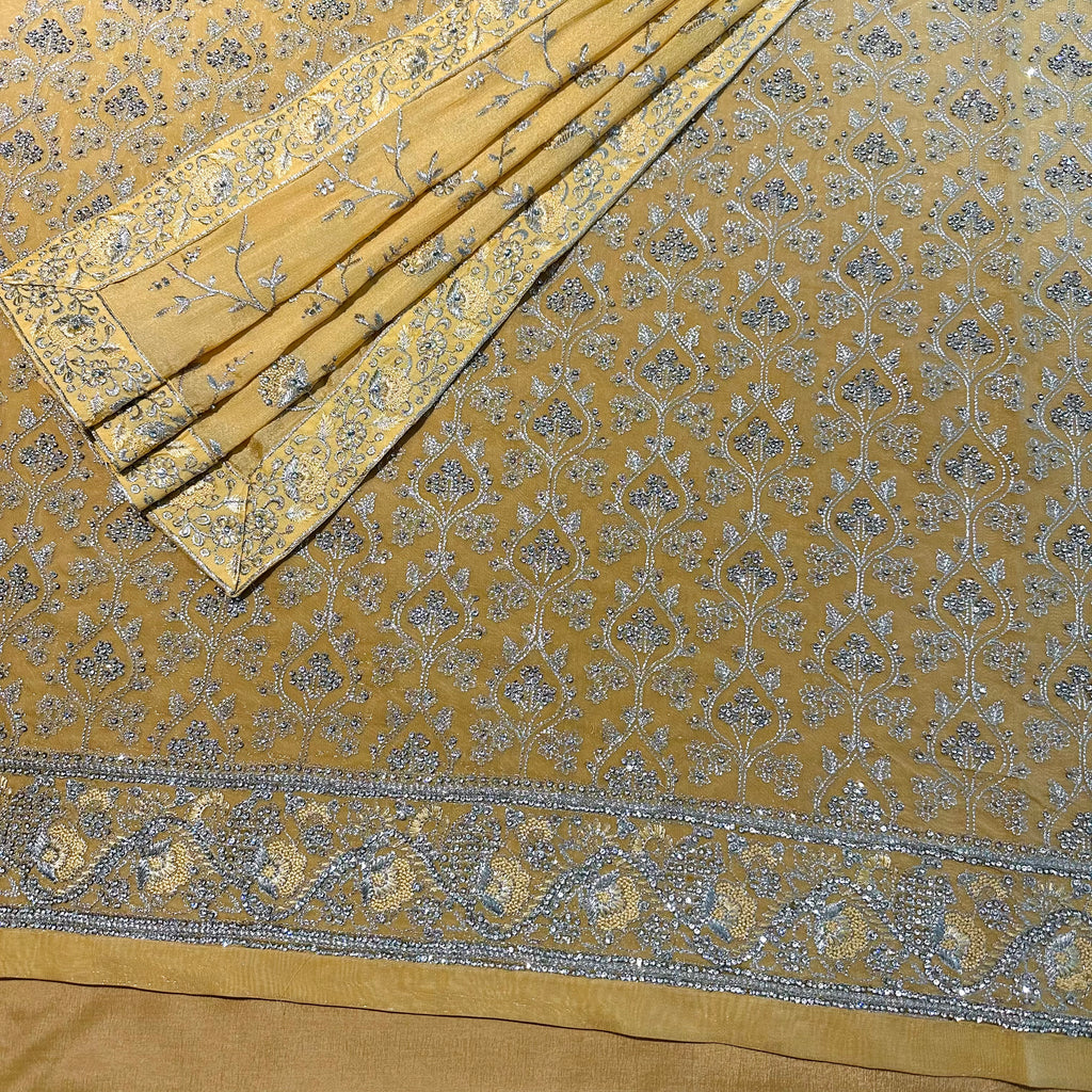 ▪️Unstitched soft faux lattice embroidered shimmer organza silk suit