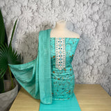 ▪️Embroidered cotton suit with an intricate mirror effect work neck design