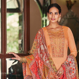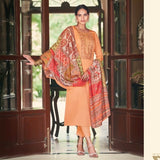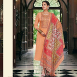 ▪️Unstitched light saffron pure satin silk cotton kameez with cording embroidery on neck