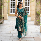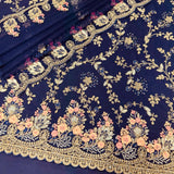 ▪️Unstitched tulle net suit with antique dori & zari floral vine embroidery