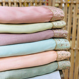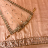 ▪️Faux net duputta with motif embroidery all over with four side gold antique trimming
