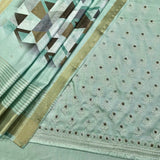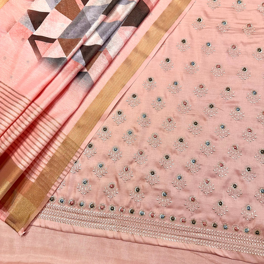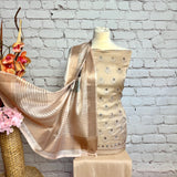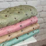 ▪️Kameez features floral jaal contrast threadwork embroidered motifs with antique subtle sippiwork all over with border