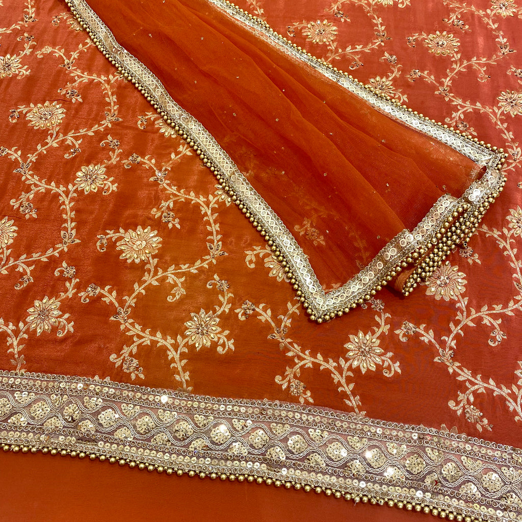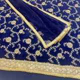 ▪️Unstitched soft floral benarsi silk suit with embellished antique stonework all over kameez & border