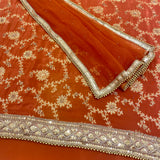 ▪️Tulle net dupatta with stonework all over & four sided gold border