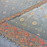 ▪️Embellished with contrast threadwork embroidery, stonework & mirrorwork on border & finished with a scalloped edging with tassels