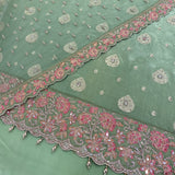 ▪️Tulle net dupatta with embroidered motifs all over & 4 side scalloped contrast threadwork border