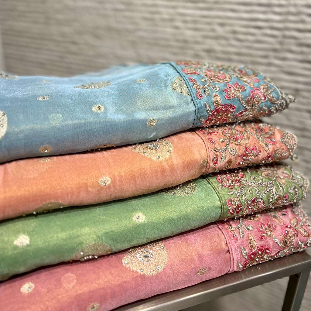 ▪️Unstitched soft shimmer faux benarsi silk suit