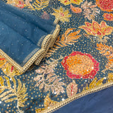 āŖļøTulle net dupatta with four side pearl trimming with stonework all over