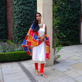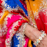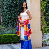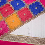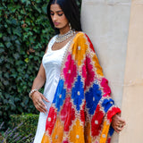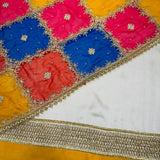āŖļøStatement multicoloured latticeĀ dupatta with 4 side antique gold borderĀ