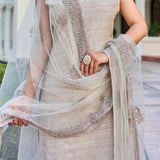 ▪️Tulle net dupatta with embroidered floral motifs all over with two side border & finished with subtle pearl trimming