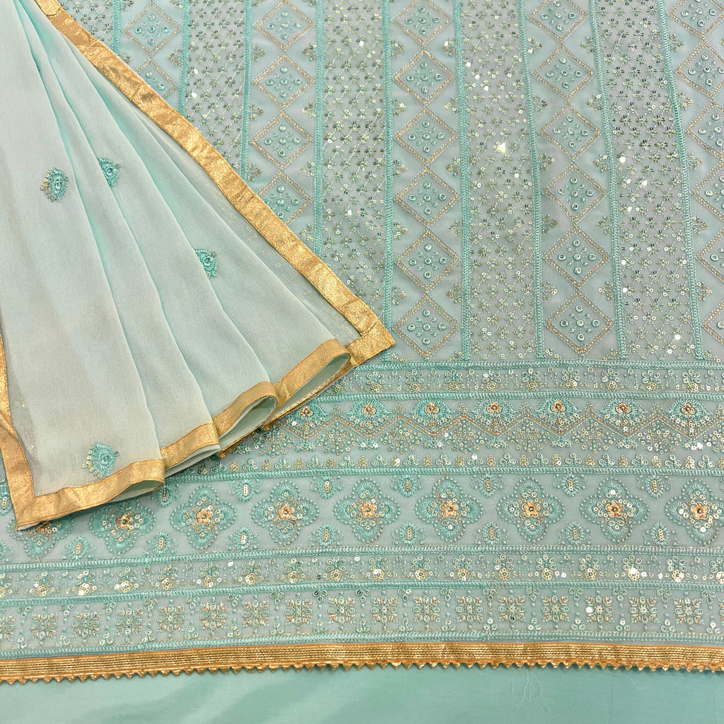 ▪️Soft unstitched georgette suit with self threadwork chikankari embroidery with sippiwork all over & border