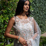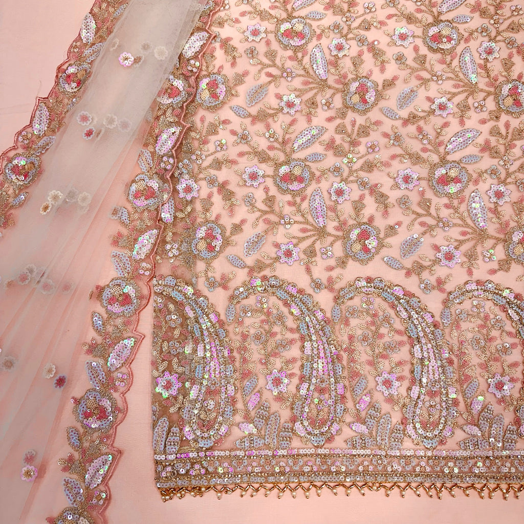 ▪️ Pastel sequin jaal featuring paisley and floral embroiderey