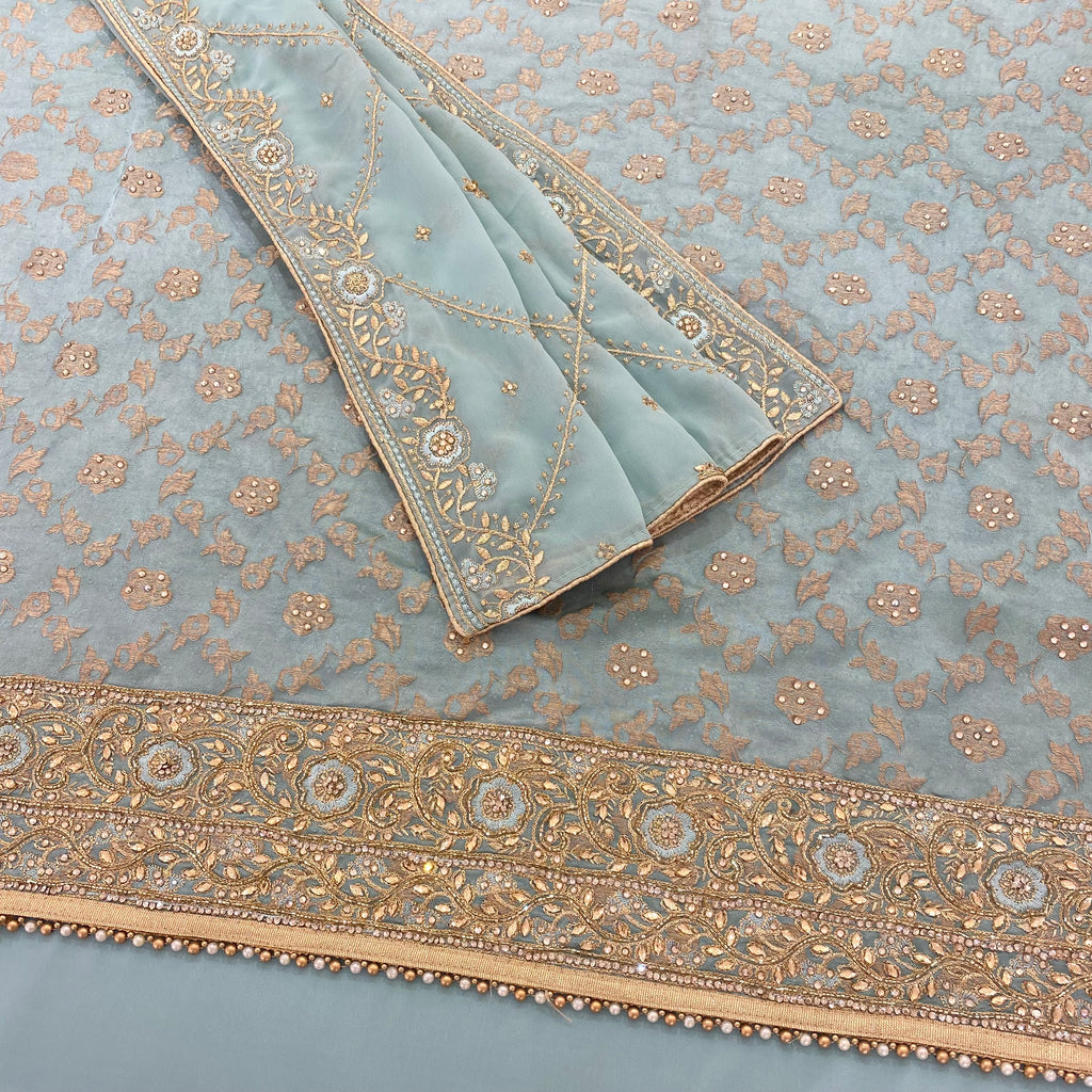 ▪️Georgette jaal duppata with embroidered two side border with stonework