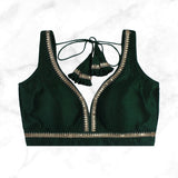 MAYA | DARK GREEN SEQUIN TRIMMED PLAIN SILK BLOUSE