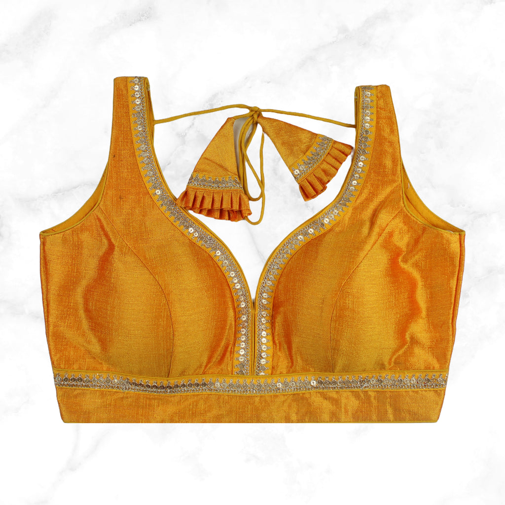 • MAYA | YELLOW SEQUIN TRIMMED PLAIN SILK BLOUSE