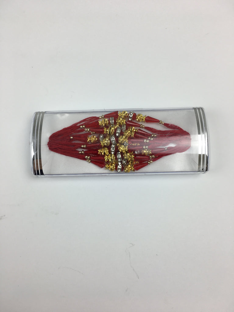Dozen Gold and Red beaded Rakhis with Red Thread - R133
