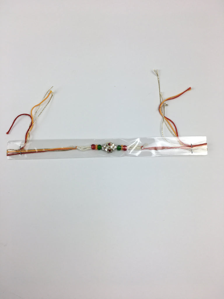 Single Cross Shaped Rakhi With Multicolour Beads And Pearls