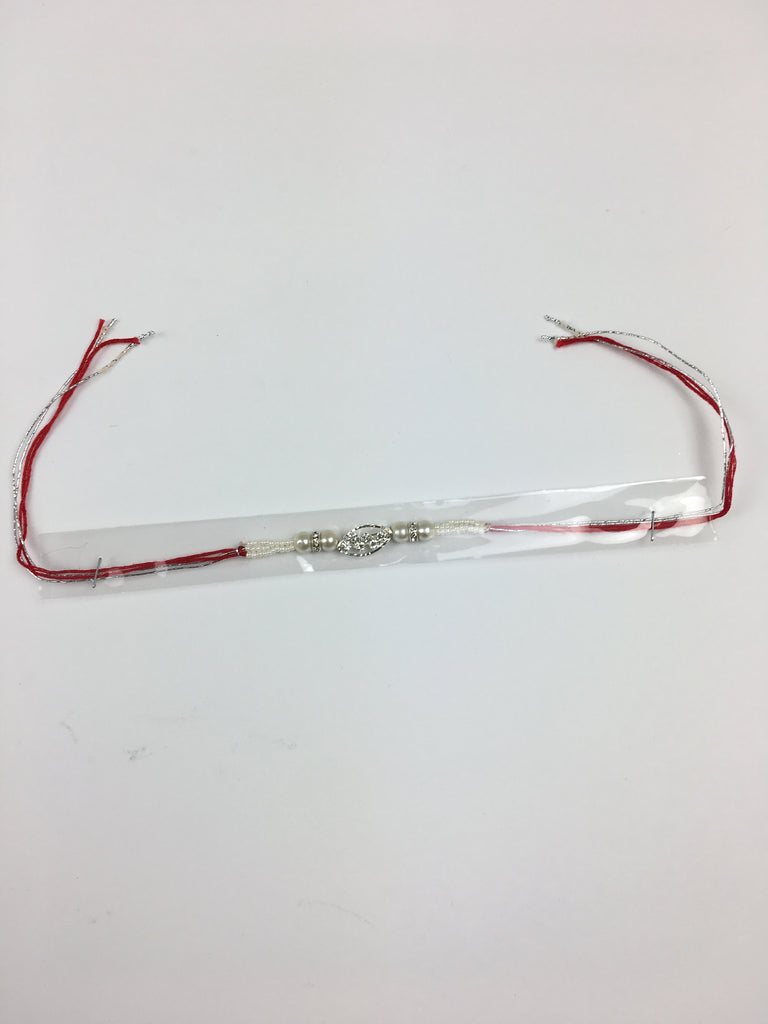 Single Silver Diamonte Oval Shaped Rakhi With Red Thread