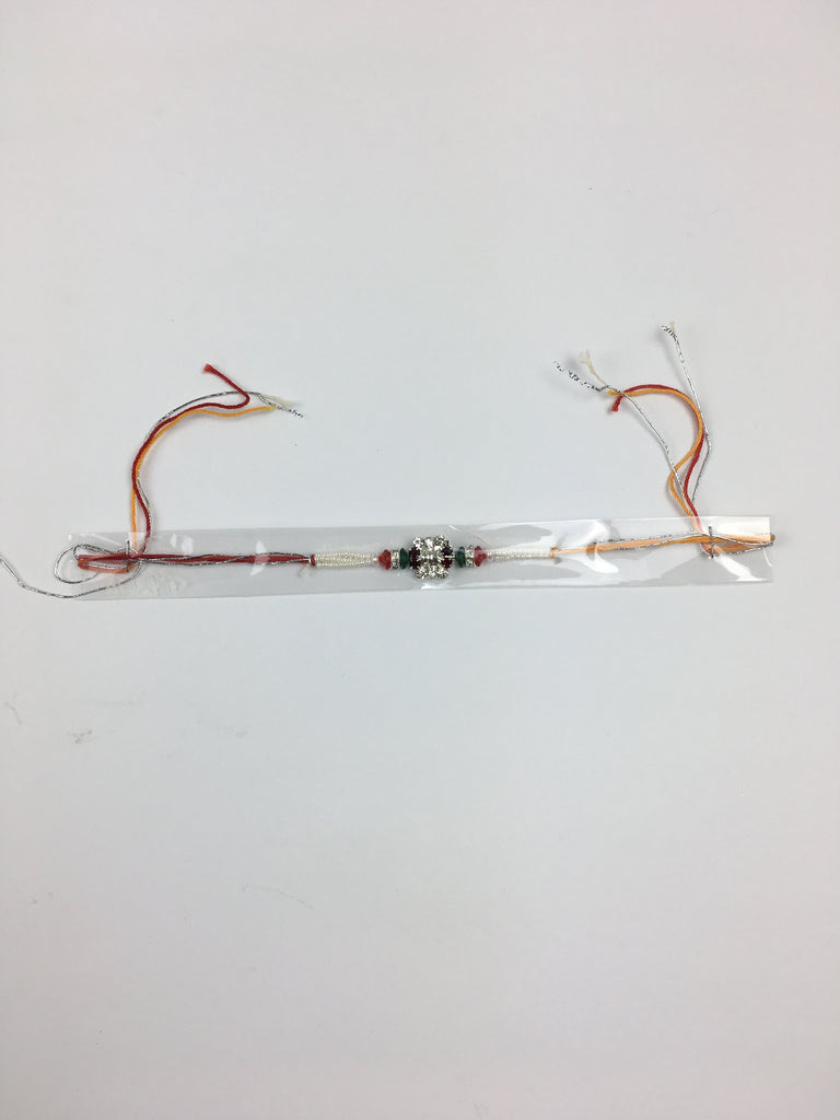 Single Square Shaped Diamonte Rakhi With Multicolour Beads And Pearls