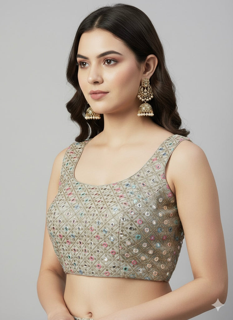 LIGHT CHAMPAGNE | GEORGETTE | MIRROR WORK BLOUSE
