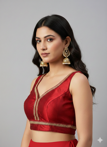 MAYA | MAROON SEQUIN TRIMMED PLAIN SILK BLOUSE