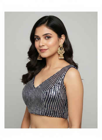 NAVY BLUE WITH SILVER | SEQUIN BLOUSE