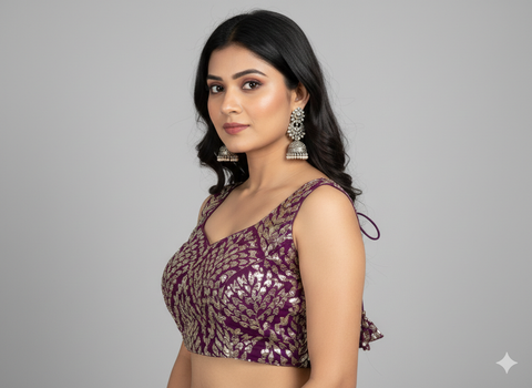 AVAANI | DEEP WINE BROCADE BLOUSE