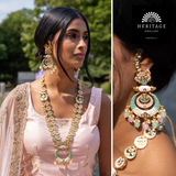 Ethnic pink & sea green layered rani haar set. Item comes with matching earrings.